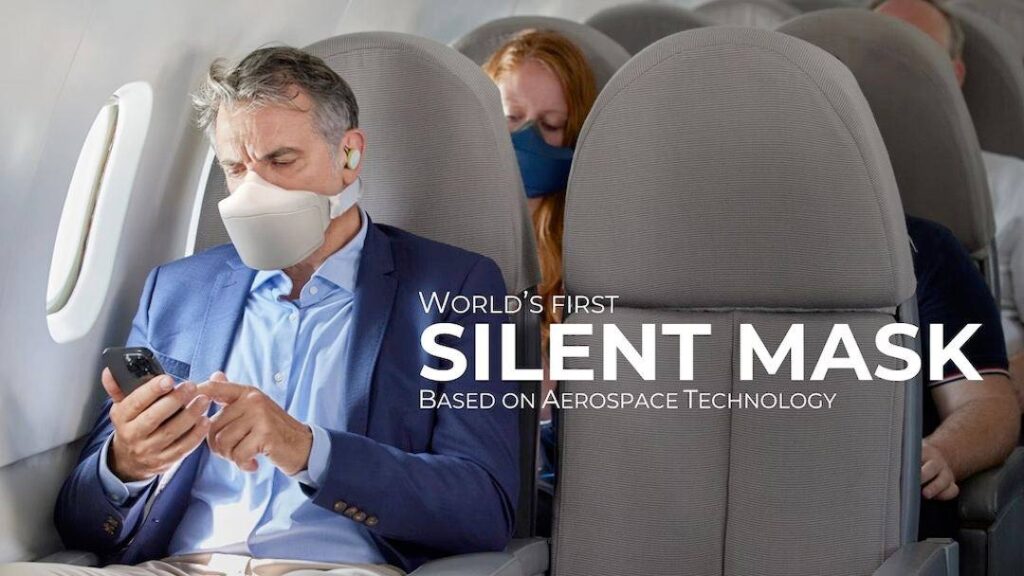 The Skyted mask uses technology similar to that found in jet engines, which use resonators to draw sound away into chambers, allowing the waves to dissipate in a controlled environment. This reduces sound by 25 decibels, so if you’re speaking at a normal volume, the person next to you won’t hear what you’re saying.